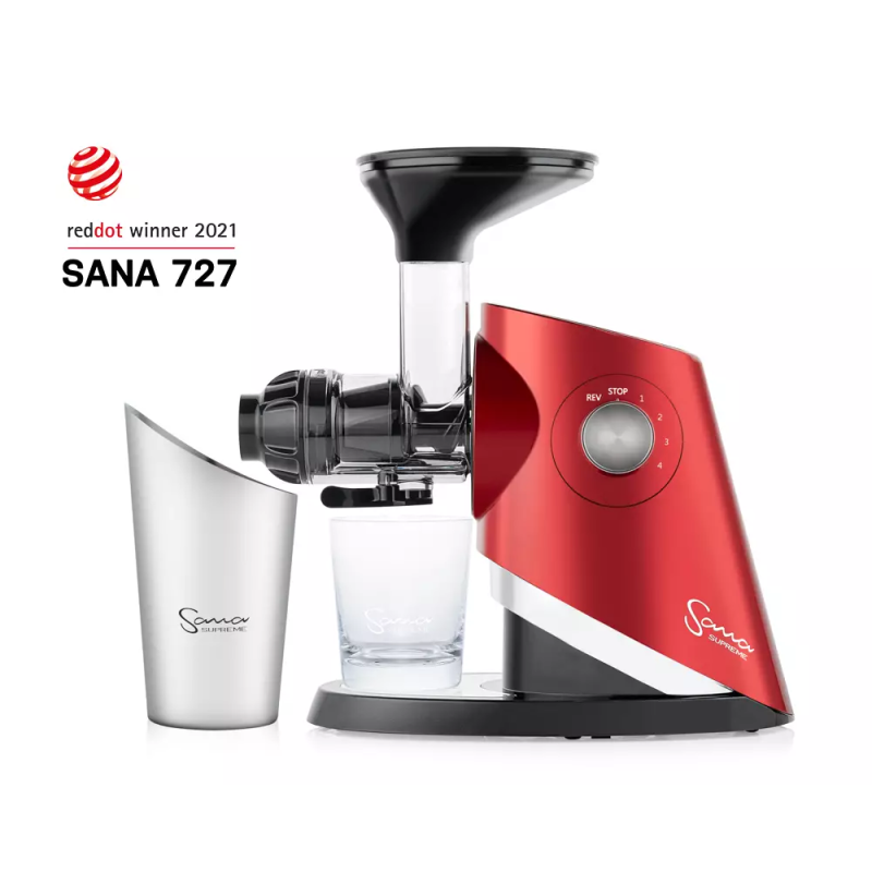 Os tubérculos são duros, as laranjas são macias e suculentas, as folhas verdes são quebradiças. Para tirar o máximo proveito de cada ingrediente, use a opção de seleção de velocidade. A maioria dos extratores funciona a uma velocidade constante, mas o Sana Supreme tem quatro opções à escolha: