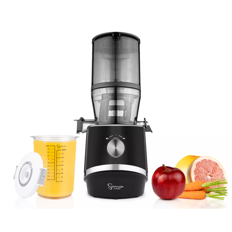 A maioria dos slow juicers verticais inclui apenas um filtro. Com três filtros incluídos, o Sana 878 destaca-se pela sua versatilidade: