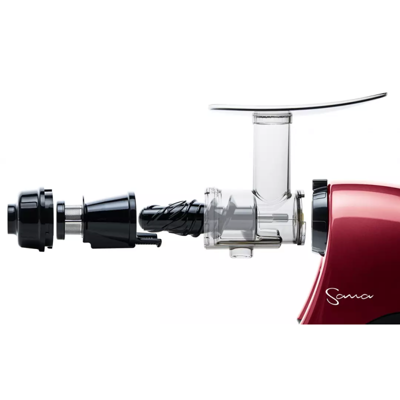 Vem com dois tipos de filtros para sumos. A maioria dos extratores horizontais tem apenas um filtro para sumos, além de, por vezes, um filtro homogeneizador em branco. O Sana 707 inclui tanto o filtro de coagem fino padrão, que produz um sumo muito fino e claro, como um filtro de coagem grossa, que produz um sumo mais denso e com mais polpa. Este filtro grosso também permite trabalhar com frutas mais macias, como bagas e ananás, algo que outros slow juicers horizontais não conseguem fazer. Também inclui um filtro de homogeneização para fazer sorvetes, manteiga de nozes, comida para bebés, leite de nozes, massas, molhos e muito mais.